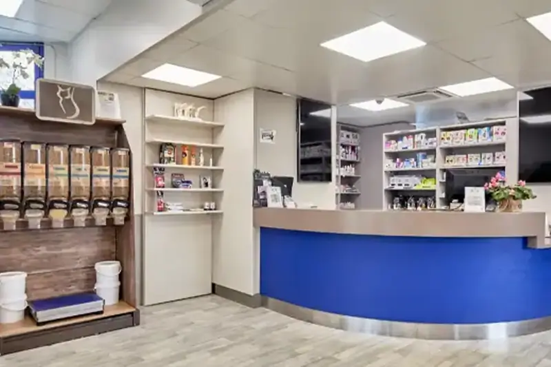 4 salles de consultation, 1 salle d'attente pour chats, 1 salle d'attente chiens, laboratoire IDEXX : catalyst et lasercyte, échographe: sonde abdo et sonde cardio, radio numérique capteur plan, colonne endoscopie, 1 salle de chirurgie avec 2 tables, 2 gazeuses, 1 respirateur, lampe à fente, une unité dentaire Dental 4.